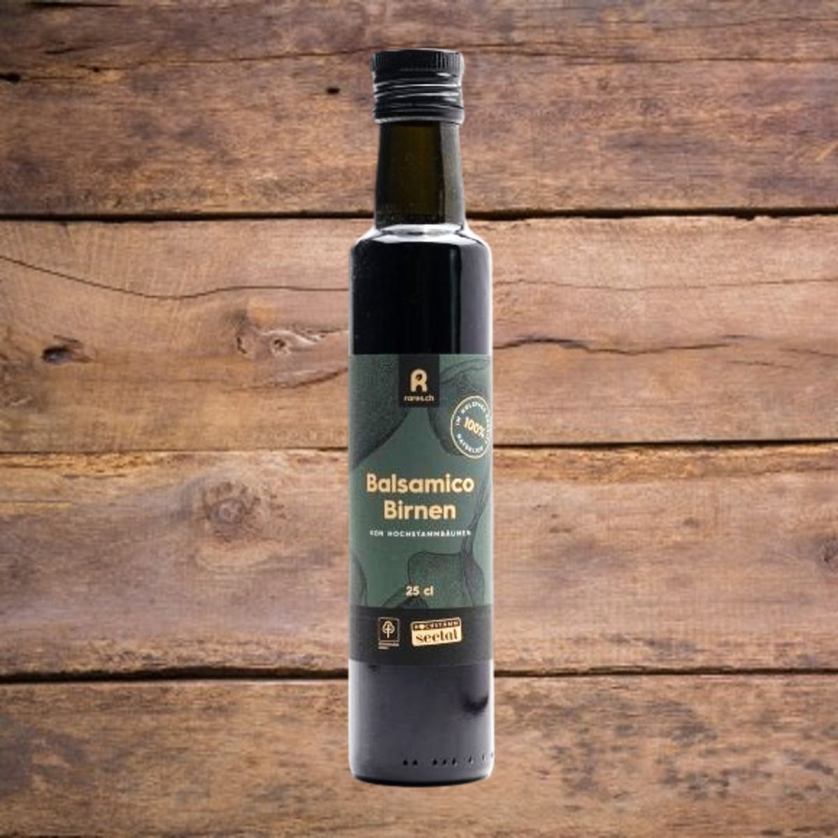 Dieser Balsamessig besteht ausschliesslich aus Hochstamm Obst. Mit dem Genuss dieses Naturproduktes helfen Sie, den Fortbestand der prächtigen Hochstamm-Landschaft in der Schweiz zu erhalten. Produziert und kontrolliert nach den Richtlinien von hochstamm-suisse.ch.